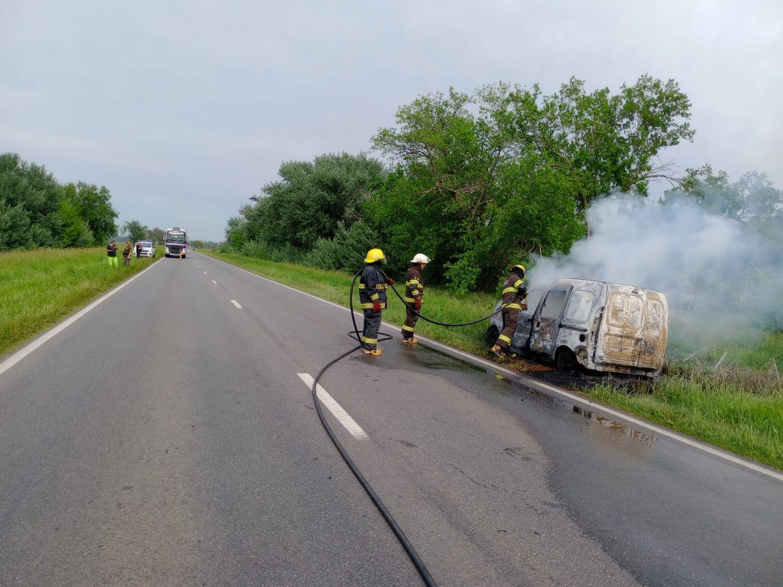 El siniestro ocurrió a la altura del kilómetro 131 , cuando por razones que se desconocen se incendio un utilitario Renault Kangoo, dominio OAT468 , que era conducido por Matías Jorge Cofente , domiciliado en Mercedes, quien circulaba en sentido Suipacha-Chivilcoy.