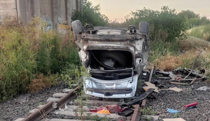 sta madrugada, un Volkswagen Vento que circulaba por Ruta 46 y el camino a Mechita perdió el control y cayó desde el puente sobre las vías férreas.