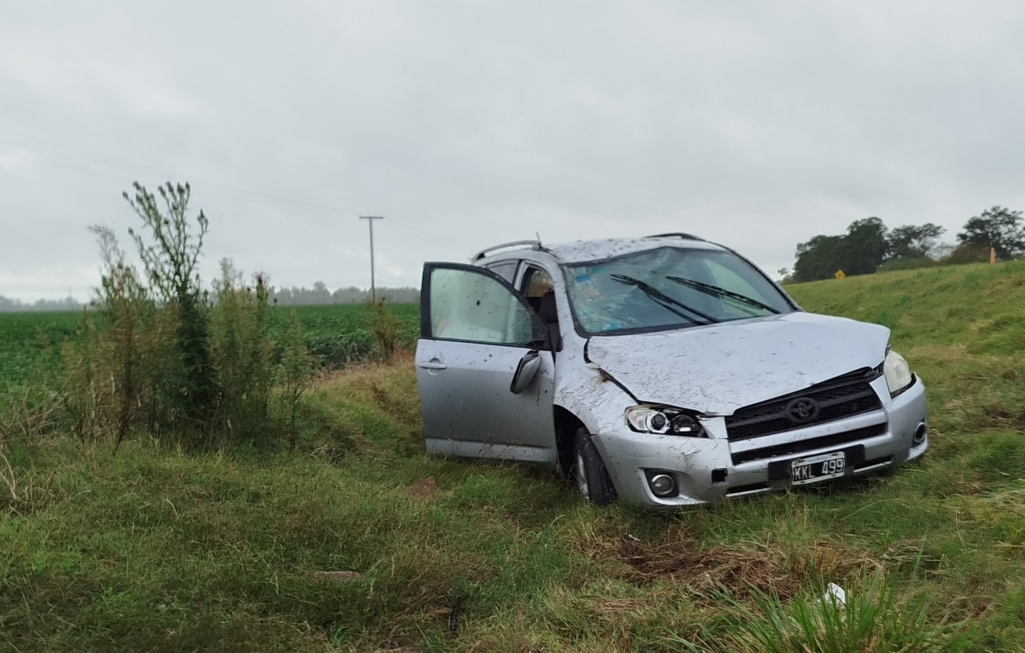 El siniestro ocurrió a la altura del kilómetro 131 , en momentos en que llovía en forma torrencial en la zona, cuando aparentemente a raíz de agua acumulada sobre la calzada,el conductor de una Toyota Rav , color gris , dominio KKL499 , que circulaba en sentido Chivilcoy-Suipacha perdió el control del rodado atravesando la mano y banquina contraria, donde luego de dar un vuelco total sobre la zona de préstamo finalizo sobre sus cuatro ruedas en sentido opuesto a su circulación.